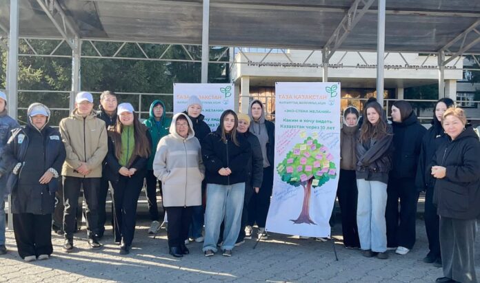 На площади напротив городского акимата, собрались юные горожане, чтобы принять участие в инициативе «Эко-стена желаний». Мероприятие прошло в рамках республиканской программы «Таза Қазақстан» и привлекло внимание общественности к вопросам охраны окружающей среды и чистоты городского пространства.